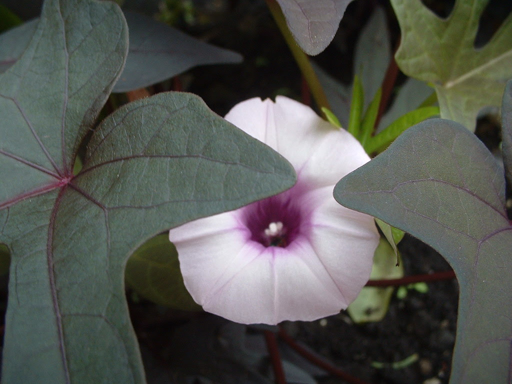 The Ipomoea genus comprises a really large range of vining plants, including the common Morning Glories, Spanish Flag, Convolvulus "Blue Enchantment" and other less desirable members of the Convolvulaceae family such as common bindweed. Fortunately, most of them are really welcome members in the garden space, and this one has become a favorite of ours over the past few years.